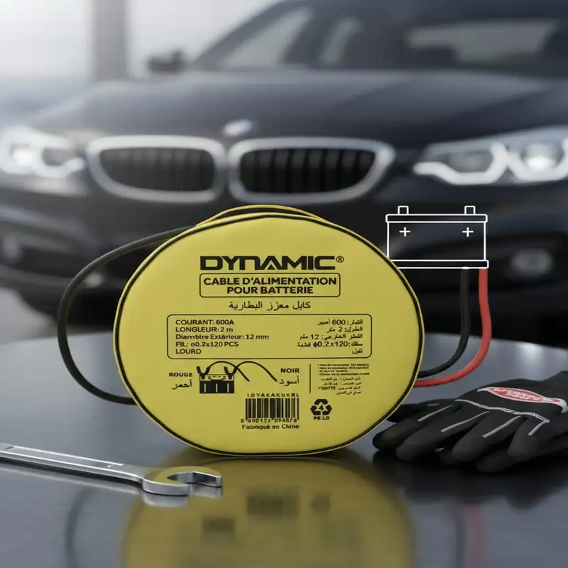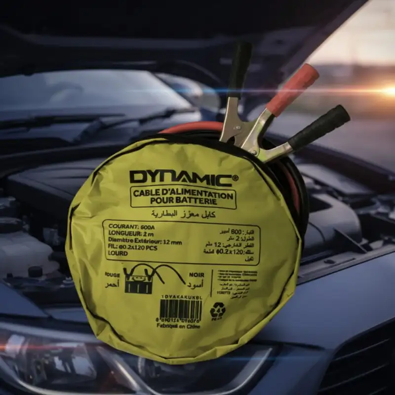 Câbles de démarrage voiture 600A conçus pour fournir une puissance fiable et immédiate lors du démarrage d’une batterie déchargée. Grâce à leur intensité élevée de 600A et leur longueur de 2 mètres, ils assurent une excellente conductivité et une manipulation facile dans toutes les situations d’urgence.