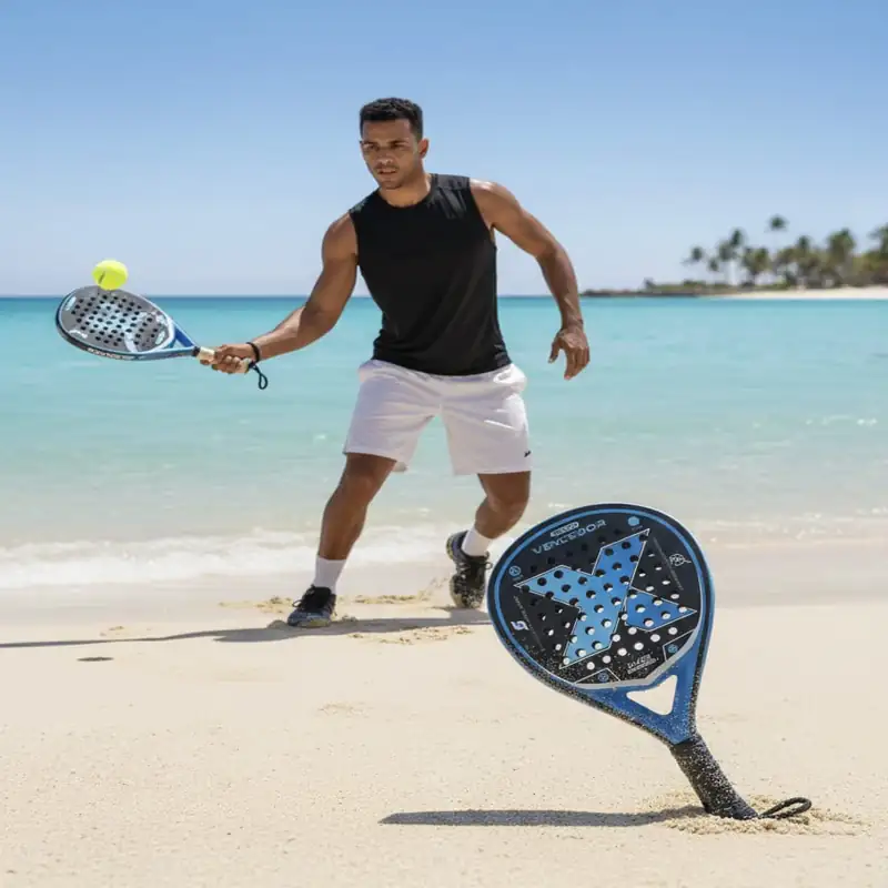 Raquette de padel conçue pour offrir un équilibre parfait entre puissance, contrôle et durabilité, même dans des conditions extrêmes comme le sable et l’humidité. Sa structure robuste et perforée assure une excellente maniabilité, des frappes précises et une grande stabilité à chaque échange.